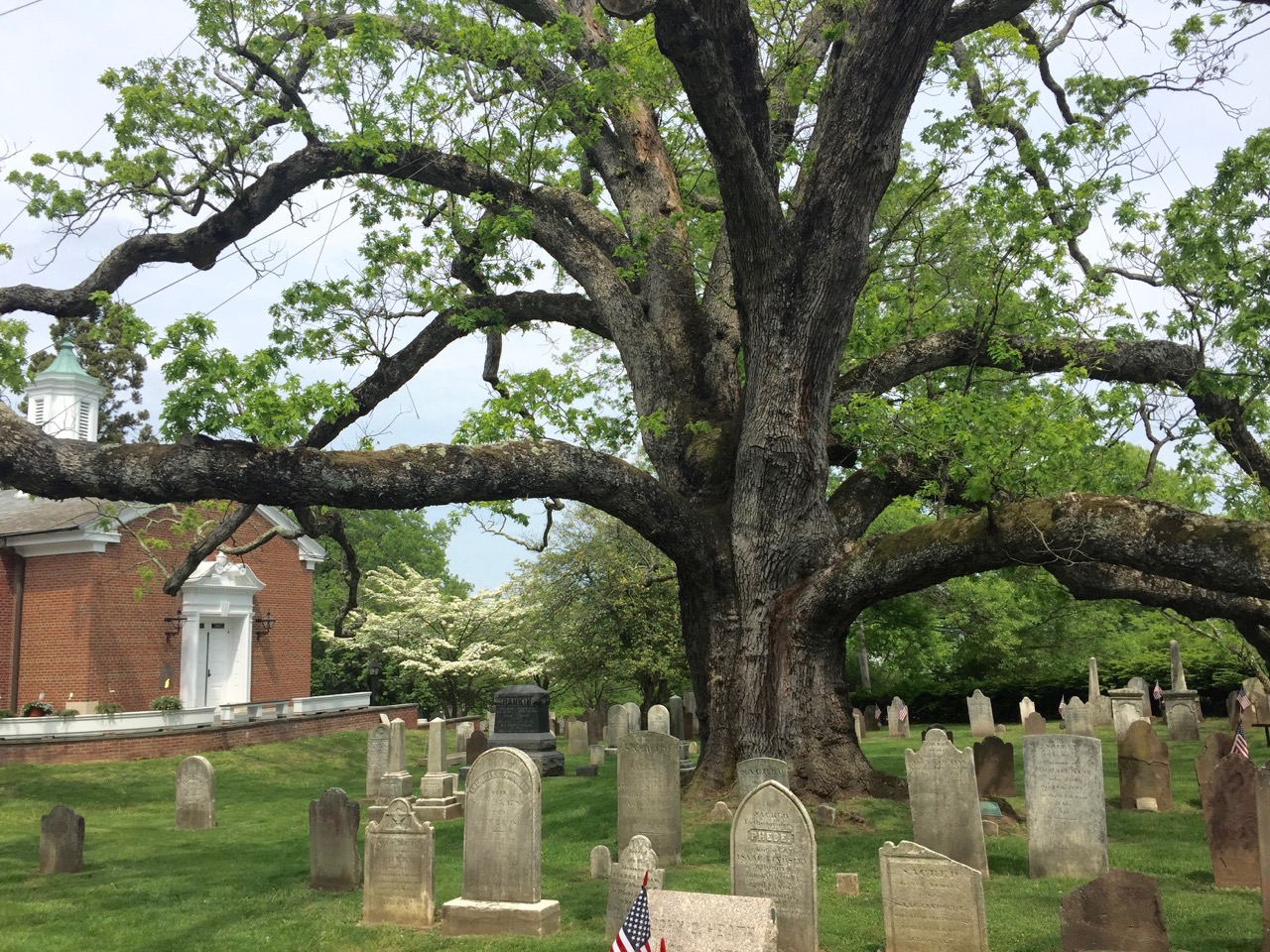 Over the years, the branches have provided shade over the headstones of revolutionary soldiers and the church’s own parishioners. The trunk has absorbed the sound of praise and prayers, and the leaves have swayed to the sound of children, my own among them, plinking away for a crowd of proud parents during piano recital season. The tree’s roots have held this town together from the ground up, as change inevitably swept through.